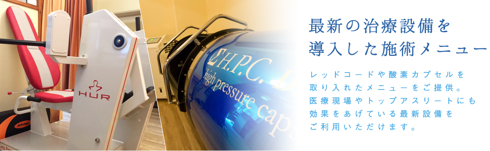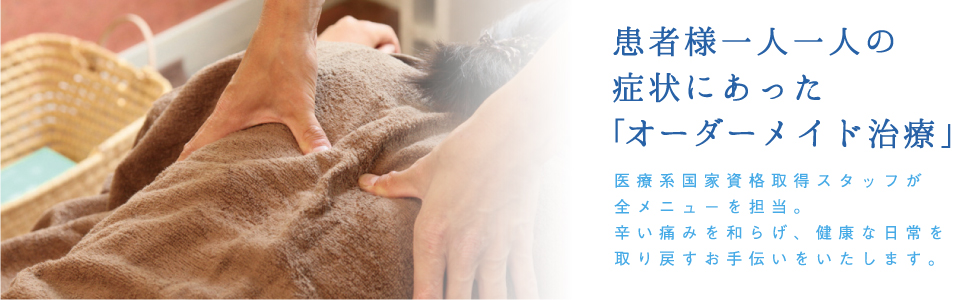 当院は、急性・慢性腰痛などの体の痛みに特化し、治療〜再発予防・リハビリまでの一貫したサポートを得意とする治療院(接骨院)です。患者様の状態にあったオーダーメイドの治療を行い、治療後は再発予防トレーニングや、在宅中・仕事中の注意事項まで、丁寧に指導いたします。また、健康維持やスポーツパフォーマンス向上のためのトレーニング、酸素カプセル、産後の骨盤調整やO脚調整、コリや疲れなどにはリラクゼーションまで、トータルボディーメンテナンスをおこなっております。経験と知識豊富な国家資格取得スタッフが丁寧に対応いたしますので、お気軽にご来店ください。