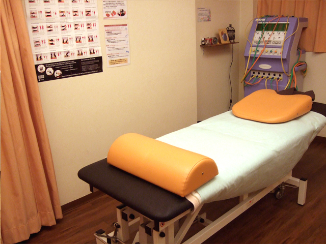 まず、徒手検査にて痛みの原因部位を特定し、主訴(患者さまが最も強く訴える症状)の再現を行います。患者様に治療方針を納得していただいた上で、症状や痛みに対して最適な治療(マニュアルセラピー、オステオパシー、カイロプラクティック、トレーニングセラピー)を行います。治療後は、リハビリトレーニング機器を使用して不足している筋力や耐久力を補い、再発を予防します。また、在宅中や仕事中など日常生活での注意事項まで、丁寧に指導をいたします。
