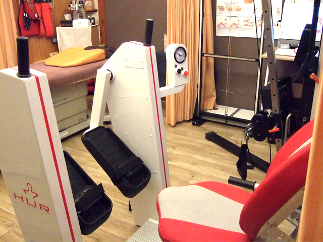 当院では、世界的に評価の高いフィンランドHUR社製のリハビリマシンを導入しております。患者さまの状態に合わせて、負荷の重さやマシンの可動範囲を細かく設定できるので、どんな方でも安全に無理なくトレーニングを行なう事が可能です。不足している筋力や耐久力を強化して、「崩れない体」をキープしていきましょう!
