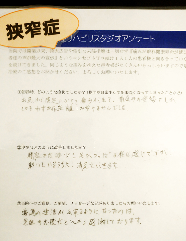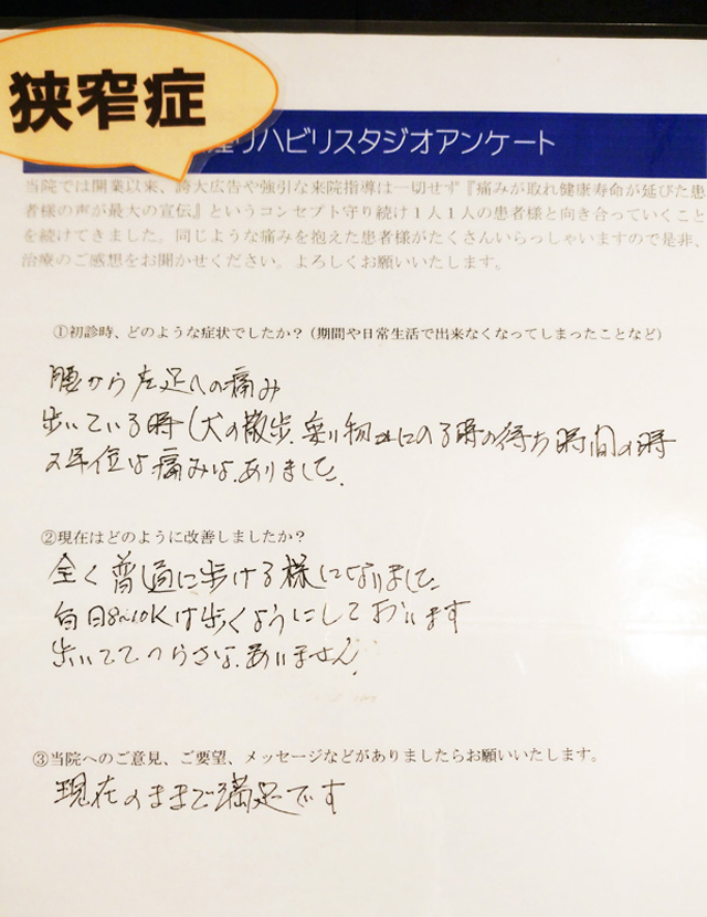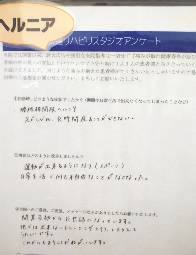 普通の生活が出来るようになったのは先生のお蔭だと心から感謝しております。